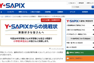 Y-SAPIXは「Y-SAPIXからの挑戦状」と題して、東京大学の数学の過去問を解いて応募する企画を実施。小学5年生以上なら誰でも応募でき、優秀答案の解答者にはプレゼントが用意されているという。応募締切日は12月31日。