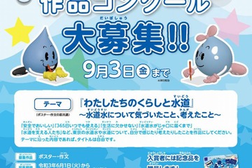 東京都水道局は2021年6月1日から9月3日、生活に不可欠な水道について理解を深めるため実施する、「第63回水道週間作品コンクール」の作品を募集する。対象は都営水道の給水区域に在住または通学している小中学生。