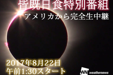 ウェザーニューズは8月22日、アメリカの一部で見ることができる「皆既日食」の生中継を行う。24時間生放送の天気番組「SOLiVE24」で特別番組を組んで放送され、ウェザーニュースのWebサイトや各種動画サイトにて閲覧できる。特別番組は8月22日午前1時30分よりスタート。