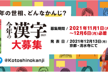 日本漢字能力検定協会は、今年一年の世相を「漢字1字」で表現する2024年「今年の漢字」を募集する。応募はWebサイトからは2024年12月9日まで、郵送は12月5日必着、応募箱設置は12月2日まで。集計結果は12月12日、清水寺で発表される。