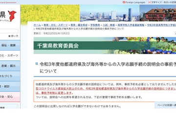 【高校受験2026】千葉県公立高、県外・海外志願者向け説明会11-12月