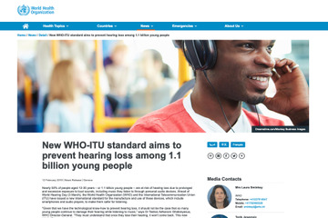 WHOは2019年2月12日、3月3日の国際耳の日(International Ear Care Day)に際して、ITU(国際電気通信連合)とともに、聴覚障害予防にあたってスマートフォンなどを含む機器の製造と使用に関する新しい国際規格を発表した。