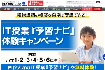 四谷大塚は、小学1年~6年生を対象としたIT授業「予習ナビ」無料体験キャンペーンを2022年7月25日まで実施している。自宅のパソコンやスマートフォン、タブレットで、いつでも・何度でも・理解できるまで、四谷大塚の授業を受けることができる。