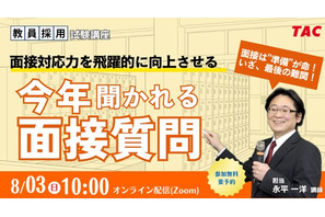 2025年8月3日、TACはオンラインで面接試験対策セミナーを開催する。講師はTAC教員講座主任講師の永平一洋氏で、受験生に向けて効率的な面接準備法を指導する。