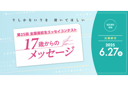 大阪経済大学は、第25回全国高校生エッセイコンテスト「17歳からのメッセージ」を開催する。同コンテストは2001年に大阪経済大学創立70周年記念事業の一環としてスタートし、今年で25年目を迎える。作品の募集期間は、2025年4月1日~6月27日。