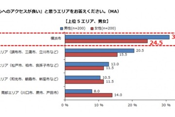 AlbaLinkは、全国の男女490人を対象に「神奈川県の住みたい街に関する意識調査」を実施し、そのデータをランキングにして公表した。神奈川県内の住みたい街は1位「横浜市」、2位「鎌倉市」、3位「川崎市」となった。