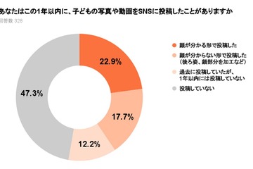 弁護士ドットコムは、子供の写真や動画をSNSに投稿することに関する実態・意識調査を行った。約半数がSNSに投稿した経験がある一方で、公開範囲を制限したり、内容や場所が特定できない写真を選ぶ等、SNS投稿によるトラブルを懸念していることが明らかになった。