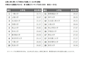 大学通信は2026年1月6日、「2025年学部系統別実就職率ランキング(法学系)」を公開した。3位は流通経済大・法学部、4位は大阪工業大・知的財産学部、5位は名古屋経済大・法学部がランクイン。1位・2位は大学通信のWebサイトより確認できる。