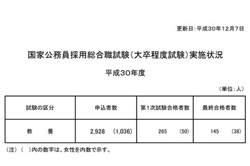 国家公務員総合職教養区分、合格者426人…女性138人で過去最高水準に