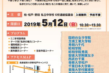 松戸・野田・柏私立中学校7校連絡協議会は2026年3月22日、「未来をつくる私立中学校フェア」を柏の葉カンファレンスセンターにて開催する。午前・午後の2部制、定員は各300組。入場無料。事前申込は2月24日正午より。アーティゾン美術館「スライド・トーク」も同時開催。