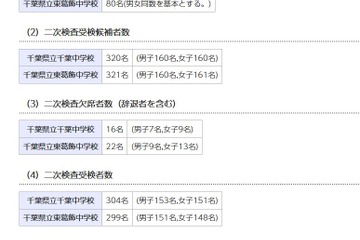 【中学受験2026】千葉県立中一次検査倍率、千葉中5.4倍・東葛飾中7.6倍