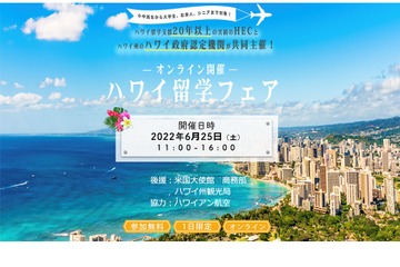 HECハワイ留学支援センターとハワイ政府認定機関Study HAWAIIは2022年6月25日、1日限りの「ハワイ留学フェア2022夏」をオンラインで開催する。対象は小中高校生・大学生とその保護者・社会人、シニアまで。参加費無料。
