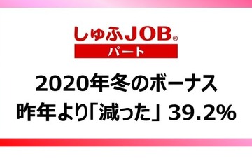 2020年冬のボーナスが、2019年冬と比べ「減った(減りそう)」と回答した世帯が39.2%にのぼることが、「しゅふJOBパート」の調査で明らかになった。使い道は貯金や生活費が多く、旅行やレジャーへの支出には消極的なようすがみられた。