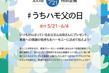 hamo-laboは2020年5月21日、家族への感謝をハーモニーに込めてプレゼントする「おうちでハモろう! hamo-laboオンラインアカペラ合唱部」第2弾の参加者募集を開始した。参加費は1家族につき8,888円(税別)。各家庭用にカスタマイズした動画をhamo-laboが制作する。