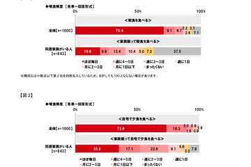 マルハニチロは2018年11月28日、「今年の食生活に関する調査2018」の結果を公表した。2017年に比べ約7割が「朝食の頻度が増えた」と回答したものの、約4割は「家族揃って朝食を食べることはない」と回答。食生活の実態と意識が明らかになった。