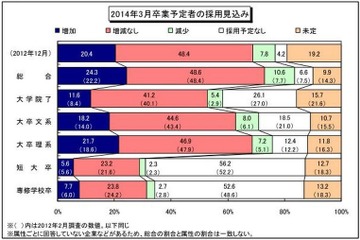 2014年度新卒採用はターゲット層を絞りつつも採用拡大…ディスコ調べ