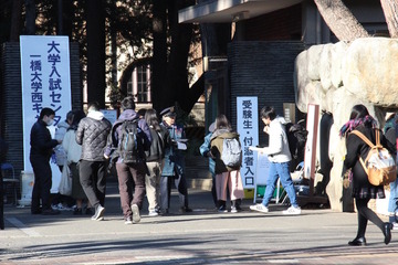 2019年1月19日(土)、全国の大学・短期大学852大学を試験会場に「平成最後」のセンター試験が始まった。1月18日に発表された変更後の確定志願者数は57万6,830人。一橋大学西キャンパスでのようすを取材した。