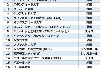 英タイムズ・ハイヤー・エデュケーション(Times Higher Education、THE)は6月14日(現地時間)、世界の大学を国際的な評判や認知度などでランク付けした世界大学評判ランキング「World Reputation Rankings 2017」を発表した。
