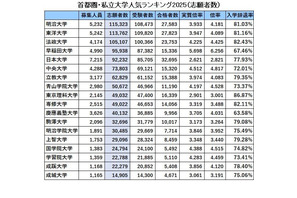 首都圏の私大人気ランキング2025…受験者数・倍率・辞退率
