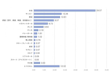 習い事関連の情報を発信するWebサイト「テラコヤプラスby Ameba」は、小学生の保護者を対象に、子供のスポーツの習い事に関する調査を実施。子供のお手本となるアスリートや子供に習わせているスポーツ、スポーツの習い事をはじめるきっかけ等の調査結果を発表した。
